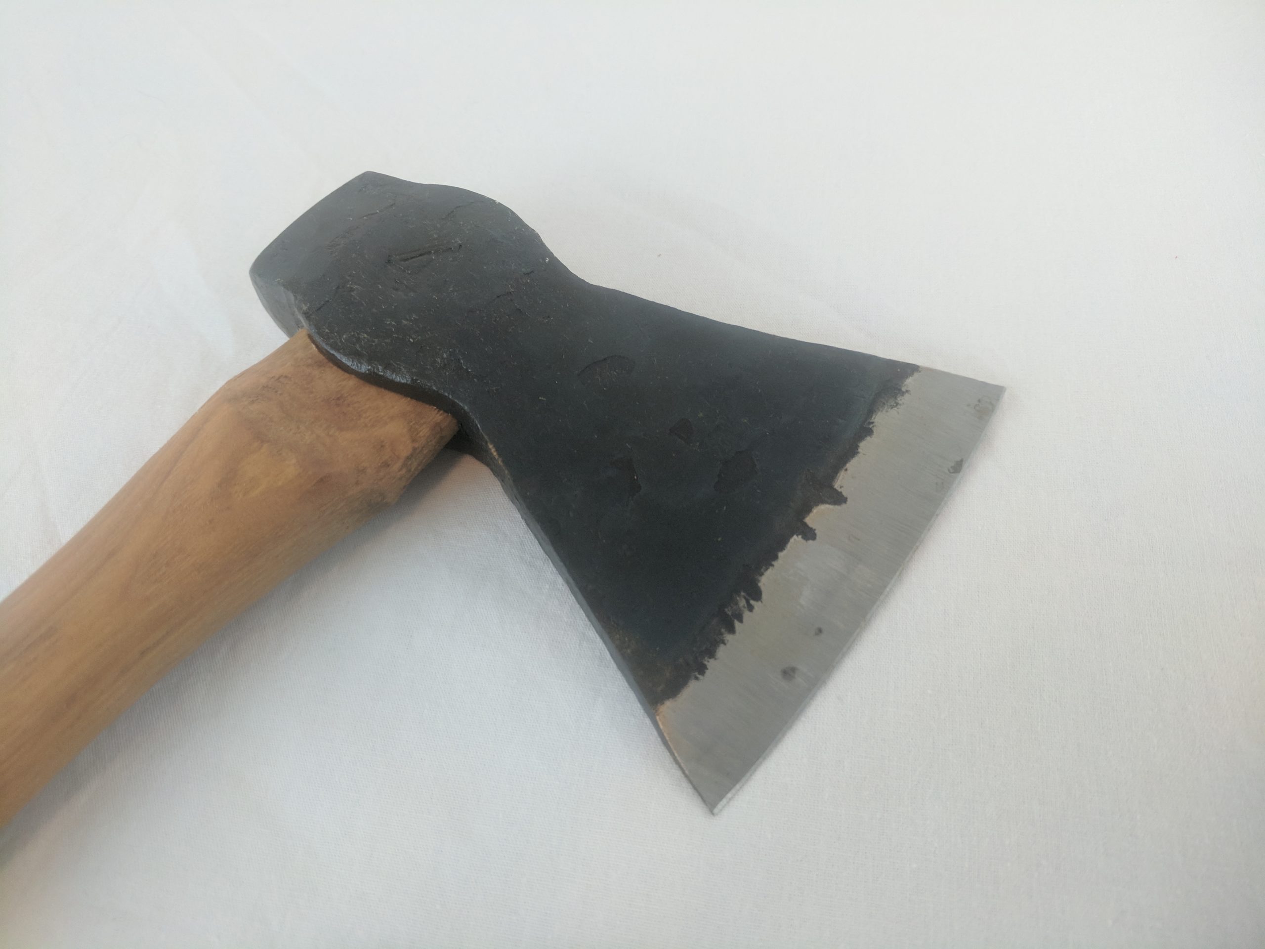 This hand forged axe is designed for throwing with input from our local axe throwing league meeting world axe throwing league specifications for throwing. Although it was modeled for throwing it would still be great as a camping hatchet. Finished with linseed oil